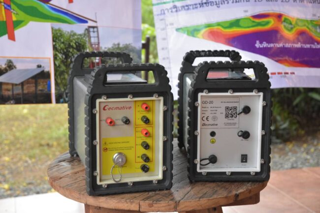 ผศ. ดีเซลล์ สวนบุรี ผู้ร่วมวิจัย กล่าวว่า ศูนย์วิจัยชุมชนตำบลวังใหม่ อำเภอวังสมบูรณ์ จังหวัดสระแก้ว เป็นพื้นที่สาธิตการปลูก “มะม่วงทับทิมทอง” ปัญหาที่เกิดขึ้นพบว่าบริเวณพื้นที่ศูนย์วิจัยเป็นพื้นที่แล้งซ้ำซากการขาดแคลนน้ำด้านเกษตรทั้งน้ำผิวดินและน้ำใต้ดิน สภาพการใช้น้ำปัจจุบัน ใช้น้ำฝนตามฤดูกาล และกักเก็บในสระน้ำไว้บางส่วนซึ่งไม่เพียงพอที่จะใช้ปลูกมะม่วงซึ่งคาดว่าจะเป็นผลไม้เศรษฐกิจใหม่ สำหรับเป็นผลไม้ส่งออก เกรดพรีเมียมหากได้รับการสนับสนุนทางวิชาการด้านการปลูก ทีมนักวิจัยใช้การประยุกต์การสำรวจแหล่งน้ำใต้ดินประสิทธิภาพสูง ในพื้นที่ศูนย์ฯ จะนำไปสู่การพัฒนาแหล่งน้ำใต้ดิน รวมทั้งระบบการจัดการน้ำที่เหมาะสม เพื่อให้ได้ผลผลิตจากการปลูกมะม่วงทับทิมทองทั้งคุณภาพและปริมาณที่สูงขึ้น เพื่อช่วยแก้ปัญหาให้กับกลุ่มเกษตรกรต่อสู้กับวิกฤตภัยแล้ง ด้วยเทคนิคการสำรวจแหล่งน้ำใต้ดินประสิทธิภาพสูง และเทคโนโลยีที่ทันสมัยด้วยการสำรวจทางธรณีฟิสิกส์สแกนหาแหล่งน้ำใต้ดินบนพื้นที่อำเภอวังสมบูรณ์