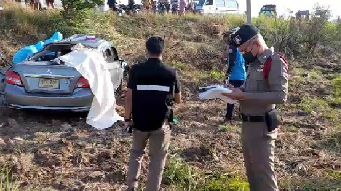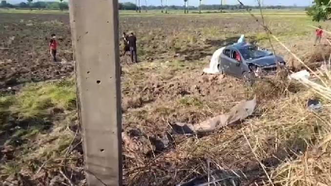 ปราจีนบุรี-หนุ่มลูกจ้างร้านทำกระจกอลูมิเนี่ยมชวนเพื่อนขับรถยนต์เก๋งเพื่อออกไปซื้อของที่ตลาดรถแหกโค้งชนเสาไฟ เสียชีวิต 3 ราย สาหัสอีก 1