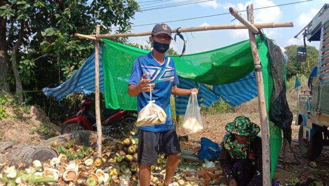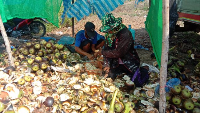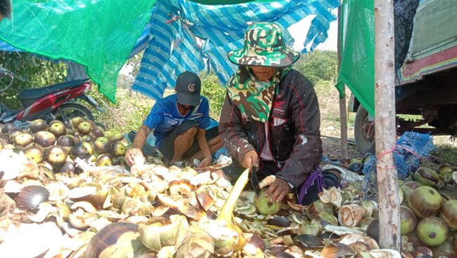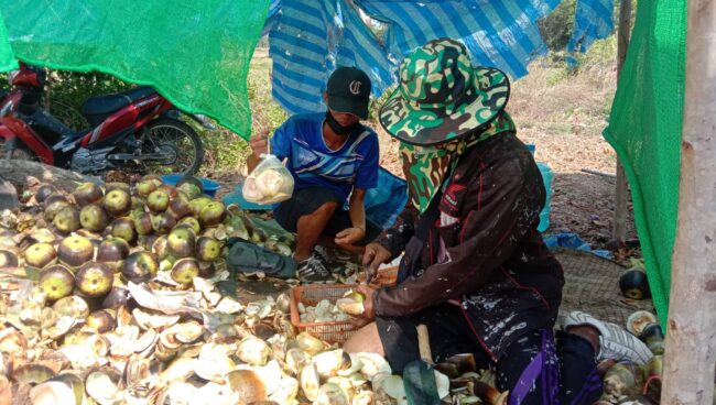นครราชสีมา-ชาวนาโคราชสุดเจ๋ง! แกะลูกตาลขายริมถนน หารายได้เสริม หลังว่างเว้นฤดูทำนา แต่ละวันจะแกะลูกตาลได้วันละ 40-50 ถุง ทำให้มีรายได้เฉลี่ยวันละ 600-1,000 บาท