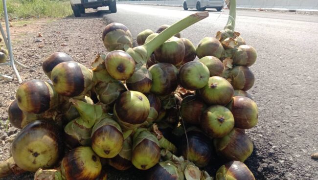ที่บริเวณริม ถ.สายประทาย-พุทไธสง ตำบลนางรำ อำเภอประทาย จังหวัดนครราชสีมา วันนี้ ( 25 เมษายน 2565 ) พบชาวบ้านหลายรายนำลูกตาล มาแกะใส่ถุงวางขายบริเวณสองข้างทางเป็นจำนวนมาก จากการสอบถาม นายสมาน แทนสีทา อายุ 46 ปี เปิดเผยว่า ตนและเพื่อนๆ เป็นชาวนาในตำบลนางรำ อำเภอประทาย ช่วงนี้ว่างเว้ยไม่ได้ทำนาปี ทำให้ไม่มีรายได้ จึงพากันไปเก็บลูกตาลจากทุ่งนาแถวๆบ้าน มาผ่าแกะเอาลูกตาลสดข้างใน นำมาใส่ถุงวางขาย ในราคาถุงละ 20 บาท