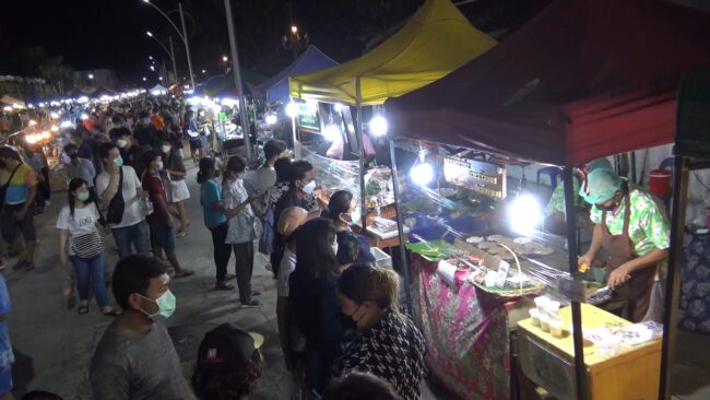 สงขลา-ถนนคนเดินสงขลากลับมาคึกคักต้อนรับเปิดประเทศ 1 พ.ค.หลังหยุดมา 1 ปีเต็ม ท่ามกลางมาตรการคุมเข้ม คัดกรองป้องกันโควิด การเข้าออก 4 จุด