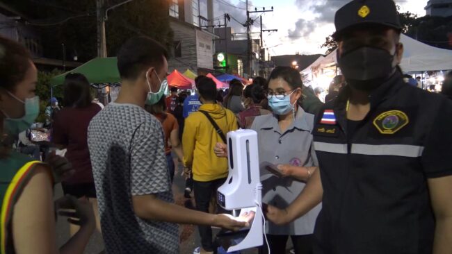 การกลับมาเปิดถนนคนเดินสงขลาครั้งนี้ เป็นไปตามมาตรการคัดกรองโควิด 19 เส้นทางเข้าออกทั้ง 4 ด้าน มีการคัดกรองนักท่องเที่ยวบริเวณทางเข้ามาทั้งการลงชื่อเช็คอินและการเช็คเอาท์ ตรวจวัดอุณหภูมิร่างกาย พร้อมเจลล้างมือ สวมแมส เว้นระยะห่างอย่างน้อย 1 เมตร และได้รับวัคซีนอย่างน้อย 2 เข็ม ที่สำคัญงดจำหน่ายเครื่องดื่มแอลกอฮอล์ทุกชนิด และงดรับประทานอาหารเครื่องดื่มภายในบริเวณตลาด ต้องซื้อกลับไปกินที่บ้าน