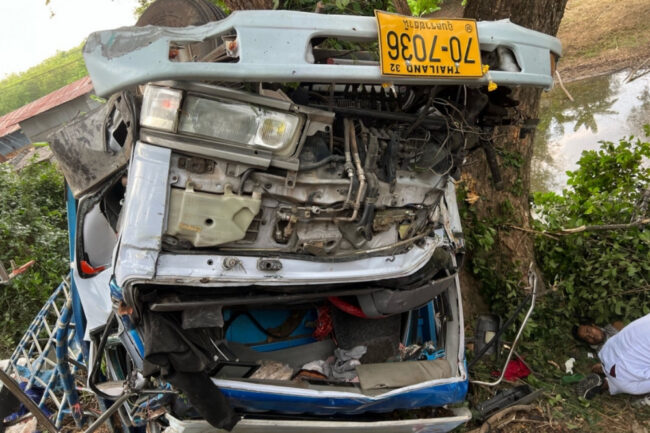เพชรบูรณ์-รถบรรทุก6ล้อลงเขาน้ำหนาวเสียหลักแหกโค้งชนต้นก้ามปูขนาดใหญ่พลิกคว่ำดับ 2 เจ็บ 9