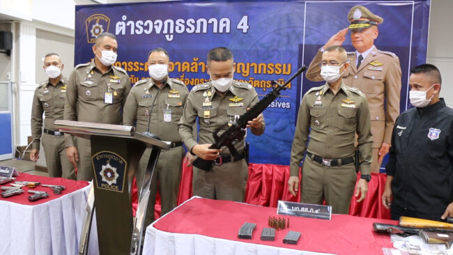 ขอนแก่น-ตำรวจภูธรภาค 4 ระดมกวาดล้างอาชญากรรมความผิดเกี่ยวกับอาวุธปืน เครื่องกระสุนปืน และวัตถุระเบิด ยึดปืนร่วม 300 กระบอก จับผู้ต้องหา 259 คน “ยรรยง” ระบุจับตาร้านรับจำนำปืน แหล่งผลิตปืน