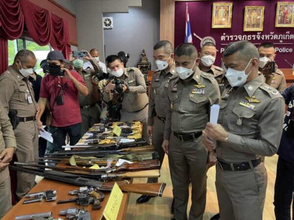 พล.ต.ท.สุรเชษฐ์ หักพาล ผู้ช่วยผู้บัญชาการตำรวจแห่งชาติ พร้อมพล.ต.ต.วันชัย เอกพรพิชญ์ รอง ผบช.ภ.8แถลงที่กองกำกับการตำรวจจังหวัดภูเก็ต ผลการปฏิบัติในการระดมกวาดล้างอาชญากรรมความผิดเกี่ยวกับอาวุธปืน เครื่องกระสุนปืน และวัตถุระเบิด ในพื้นที่ตำรวจภูธรภาค 8 ระหว่างวันที่ 25-29 เม.ย.65 เปิดปฏิบัติการปิดล้อมตรวจค้น 409 จุด กวาดล้างอาวุธ ในภาค 8 เตรียมพร้อมเปิดประเทศรอรับนักท่องเที่ยว 2 ชายฝั่งอันดามันและอ่าวไทย