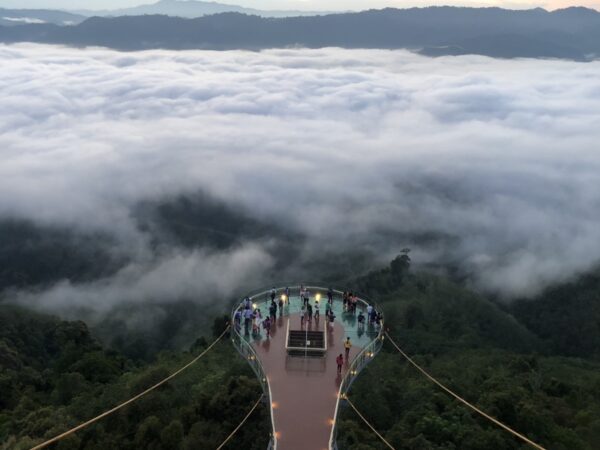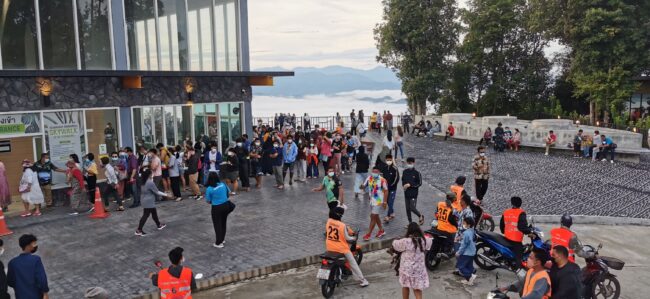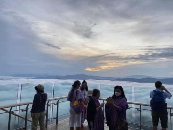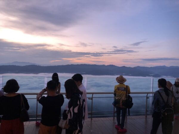 วันนี้ (15 พ.ค.) บรรยากาศในช่วงวันหยุดยาวตั้งแต่ วันที่13-16 พ.ค. นักท่องเที่ยวชาวไทยและชาวต่างชาติ เดินทางมาเฝ้ารอขึ้นบนอาคารสกายวอล์คเพื่อชมทะเลหมอก ในพื้นที่ตำบลอัยเยอร์เวง กันเป็นจำนวนมาก โดยมีนักท่องเที่ยวที่เดินทางมาเพื่อมาชมแสงแรกที่อำเภอเบตง จังหวัดยะลา ใต้สุดแดนสยาม กันตั้งแต่เช้ามืด จนทำให้รถติด