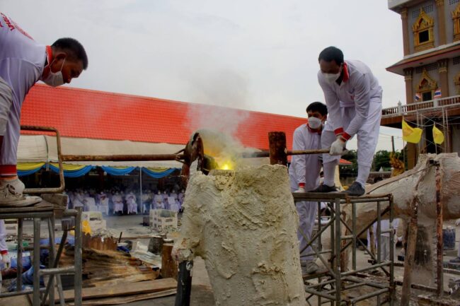 สมุทรปราการ-“พระครูแจ้”พระครูปลัดสุวัฒนศีลคุณ ได้ฤกษ์ดี วันที่ ๑๕ เดือน ๕ ฤกษ์เททองหล่อพระพุทธเมตตา ๑๕.๑๕ น.”บิณฑ์ บรรลือฤทธิ์”ประธานอุปถัมภ์ ถวาย 3 ล้านบาท มีเหล่าพุทธศาสนิกชนข้าราชการตำรวจ ร่วมในพิธีเพื่อเป็นสิริมงคลเมื่อเวลา ๑๕.๑๕ น.ของวันอาทิตย์ที่ ๑๕ พฤษภาคม ๒๕๖๕ พระพรหมวชิราธิบดี เจ้าอาวาสวัดมหาธาตุยุวราชรังสฤษฎิ์ เป็นประธานในพิธีเททองหล่อพระพุทธเมตตา ส่วนอก”วาระ ๒ โดยมี “พระครูแจ้”พระครูปลัดสุวัฒนศีลคุณ เจ้าอาวาสวัดบางพลีใหญ่กลาง ประธานดำเนินการฝ่างสงฆ์ พร้อมคณะสงฆ์ เหล่าพุทธศาสนิกชนถวายการต้อนรับพิธีเททองหล่อพระ”พระพุทธเมตตา”พระอุระ(ส่วนอก)วาระที่ ๒ ในวันอาทิตย์ที่ ๑๕ พฤษภาคม ๒๕๖๕ ตรงกับวันวิสาขบูชา ขึ้น ๑๕ ค่ำเดือน ๖ ณ มณฑลพิธีลานหน้าองค์มหาเจดีย์พิศาลวุฒิกิจมงคลมหาชนบูชิต วัดบางพลีใหญ่กลาง อ.บางพลี จ.สมุทรปราการ ซึ่งได้รับความเมตตาจาก พระพรหมวชิราธิบดี เจ้าอาวาสวัดมหาธาตุยุวราชรังสฤษฎิ์ เป็นประธานสงฆ์ในพิธีเททองหล่อพระพุทธเมตตา”ส่วนอก”วาระ ๒ โดยมี ท่าน”พระครูแจ้”พระครูปลัดสุวัฒนศีลคุณ เจ้าอาวาสวัดบางพลีใหญ่กลาง ประธานดำเนินการฝ่ายสงฆ์และ ดร.รัตนา สมสกุลรุ่งเรือง ประธานมูลนิธิร่วมกตัญญู นายบิณฑ์ บรรลือฤทธิ์ เป็นประธานอุปถัมภ์ ถวายเงินสด ๓ ล้านบาท เททองหล่อพระพุทธเมตตา”ส่วนอก มีเหล่าพุทธศาสนิกชน ข้าราชการตำรวจ ศิษยานุศิษย์ อุบาสกอุบาสิกา ร่วมในพิธีครั้งนี้เป็นจำนวนมาก พร้อมกำหนดพิธีเททองหล่อพระพุทธเมตตา”ส่วนแขนและฐาน”ในวันที่ ๑๓ กรกฎาคม ๒๕๖๕ เวลา ๑๗.๑๗ น.ซึ่งตรงกับวันอาสาฬหบูชา เป็นวาระ ๓ ต่อไป