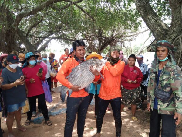 นครรราชสีมา-สุดคึกคัก! ชาวบ้านนับร้อย แห่ทอดแหจับปลายักษ์บึงน้ำสาธารณะของหมู่บ้าน ผ่อนคลายช่วงโควิดระบาด สร้างรายได้เข้าชุมชน