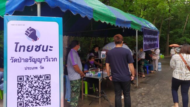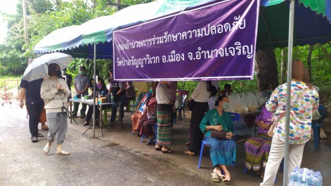 เมื่อวันที่ 19 พฤษภาคม 2565 ผู้สื่อข่าวรายงาน บรรยากาศ ที่วัดป่าอรัญญาวิเวก ตำบลไก่คำ อำเภอเมือง จังหวัดอำนาจเจริญ มีประชาชนเดินทางมา ไหว้หลวงปู่ แสง เป็นจำนวนมาก ท่ามกลางสายฝนที่ตกลงมาอย่างต่อเนื่อง มีเจ้าหน้าที่ตรวจคัดกรองโควิดเป็นอย่างดี ก่อนที่จะเข้าไปกราบไหว้หลวงปู่แสง ส่วนหญิงยังทิ้งระยะห่างอยู่ 5 เมตรเท่าเดิม