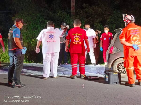ที่เกิดเหตุพบรถเก๋ง ฮอนด้า สีดำ จอดติดเครื่องยนต์อยู่ริมถนน เจ้าหน้าที่ต้องนำเชือกมากั้นห้ามไม่ให้ผู้ที่ไม่เกี่ยวข้องเข้าใกล้ เพราะเกรงจะกระทบต่อพยานหลักฐาน และได้ประสานแพทย์โรงพยาบาลมหาราชฯ และเจ้าหน้าที่พิสูจน์หลักฐาน เข้าตรวจสอบ
