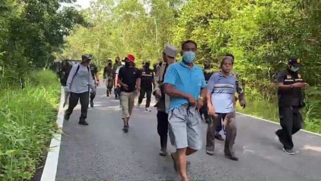 ล่าสุดเมื่อวันที่ 3 มิ.ย.65 ชาวบ้าน 5 หมู่บ้าน เจ้าหน้าที่ฝ่ายปกครองทหาร ร. 5 พัน 1 ตำรวจกองปราบ 6 ข่าวกรองทหารกว่า 100 คน ร่วมกันลงพื้นที่ควนตั้งหวัน หมู่ 11 ต.บ้านพรุ อ.หาดใหญ่ จ.สงขลาเพื่อปูพรมหาตัวกลุ่มชาวเมียนมาหลบหนีเข้าเมืองที่คาดว่าจะซ่อนตัวอยู่ในป่า