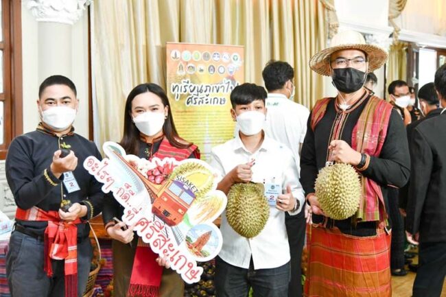 น.ส.ไตรศุลี กล่าวว่า จังหวัดศรีสะเกษมีกำหนดจะจัดงาน “เทศกาลทุเรียนภูเขาไฟศรีสะเกษและของดีศรีสะเกษ ปี 2565” ระหว่าง วันที่ 9-15 มิ.ย. 2565 ณ สนามหน้าศาลากลางจังหวัดศรีสะเกษ เพื่อเป็นกิจกรรมเพิ่มช่องทางการจำหน่ายสินค้าให้กับเกษตรกรและวิสาหกิจชุมชนทั้งช่องทางซื้อขายโดยตรงและแบบออนไลน์ และยังเป็นการส่งเสริมภาคการท่องเที่ยวการท่องเที่ยว ภายในงานมีการแสดงผลงานทางวิชาการและนวัตกรรมด้านการเกษตร งานสืบสานวัฒนธรรมประเพณีสี่เผ่าของชาวศรีสะเกษ การเสวนาทุนทางวัฒนธรรมเพื่อสร้างมูลค่าทางเศรษฐกิจ