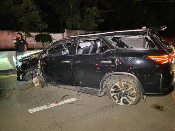 ระทึก! ฟอร์จูนเนอร์ป้ายแดง แหกโค้งหงายท้องพังยับ ก่อนทางลงอุโมงค์ราบ 11 ชายคนขับหัวเกรียน พร้อมเพื่อน 3 รายบาดเจ็บ ถูกหามส่งโรงพยาบาล