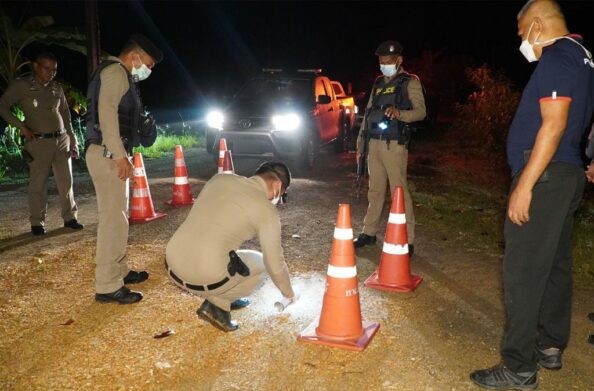 พ.ต.ท.ฉลอง ขุนภักดี สารวัตรเวร สภ.ควนขนุน จ.พัทลุง ได้รับแจ้งเมื่อเวลา 0.10 น.ของวันที่ 18 มิ.ย.2565 มีเหตุคนร้ายขับขี่รถจักรยานยนต์ ใช้อาวุธปืนสงครามยิงถล่มบ้านพัก หลังสำนักงานไฟฟ้าควนขนุน จึงเดินทางรุดไปตรวจสอบ พร้อมด้วยเจ้าหน้าที่ตำรวจชุดสืบสวน