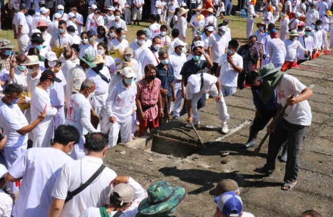 เมื่อวันที่ 19 มิ.ย.2565 ที่สุสานมูลนิธิหลักเสียงเซี่ยงตึ้งนครราชสีมา (เม้งยิ้งซัวจึง) ริมทางหลวงแผ่นดินหมายเลข 224 ถ.ราชสีมา-โชคชัย ต.หัวทะเล อ.เมือง จ.นครราชสีมา นายประวิทย์ อัศวินชัย ประธานมูลนิธิพุทธธรรม 31 นครราชสีมา พร้อมนายอภิภวัส ตั้งนันทนาการ ประธานมูลนิธิสว่างเมตตาธรรมสถาน จ.นครราชสีมา นายเอกภพ โตมรศักดิ์ นายกเทศมนตรีตำบลหัวทะเล นายศักดิ์ชัย พงษ์พินิจกุล ฐานะหัวหน้าทีมทรงเจ้า และผู้เกี่ยวข้องรวมถึงนักแสวงบุญจำนวนมาก