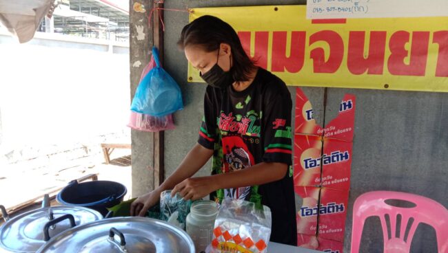 “ตนเองจึงได้ติดป้ายประกาศขอปรับราคาขายขนมจีนขึ้นอีก 10 บาท เป็นชุดละ 30 บาท จากเดิมแค่ 20 บาท ทำให้เหลือกำไรจากการขายขนมจีนลดลง ทั้งคนกินขนมจีนในตลาดก็น้อยลงจากช่วงโควิด-19ระบาด คนเดินตลาดน้อยลงมาก จำเป็นต้องลดจำนวนการทำขนมจีนน้ำยาขายในตลาดลดลงตามไปด้วย เมื่อต้นทุนในการซื้อวัตถุดิบสูงขึ้น ทำให้เหลือกำไรจากการขนมจีนน้ำยาในแต่ละวันเพียง 100 กว่าบาทเท่านั้น แทบไม่พอค่าใช้จ่ายเลี้ยงครอบครัวในแต่ละวัน จึงวอนขอให้ภาครัฐช่วยเหลือค่าครองชีพของประชาชนด้วย”