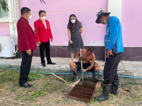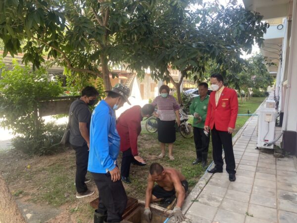 ชัยภูมิ- นายกเทศมนตรีเทศบาลเมืองชัยภูมิ มอบหมายทีมกองช่างสุขาภิบาล และกองช่างดับเพลิง สำนักงานเทศบาลเมืองชัยภูมิ แก้ไขท่อระบายทิ้งบริเวณรอบอาคารสำนักงานเขตพื้นที่การศึกษามัธมศึกษาชัยภูมิ ป้องกันการแพร่ระบาดของยุงลายในช่วงฤดูฝนเพื่อลดปัญหาโรคไข้เลือดออก
