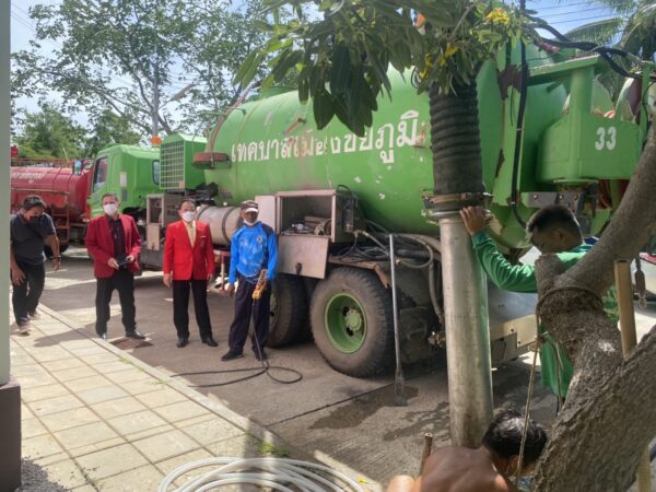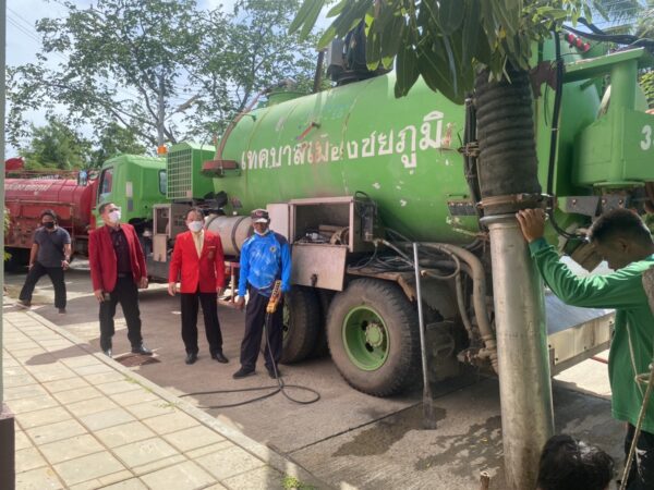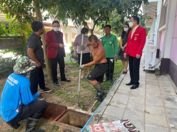 นายธีวรา วิตนากร นายกเทศมนตรีเทศบาลเมืองชัยภูมิ มอบหมายทีมกองช่างสุขาภิบาล และกองช่างดับเพลิง สำนักงานเทศบาลเมืองชัยภูมิ เพื่อแก้ไขท่อระบายทิ้งบริเวณรอบอาคารสำนักงานเขตพื้นที่การศึกษามัธมศึกษาชัยภูมิ ชุมชนขี้เหล็กใหญ่ ต.ในเมือง อ.เมืองชัยภูมิ จ.ชัยภูมิ เป็นการป้องกันการแพร่ระบายของเชื้อโรคต่างๆ และป้องกันการแพร่ระบาดของยุงลายในช่วงฤดูฝน