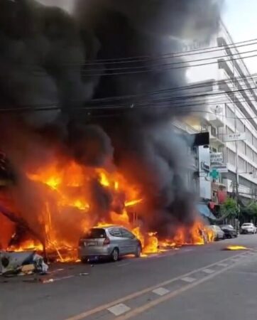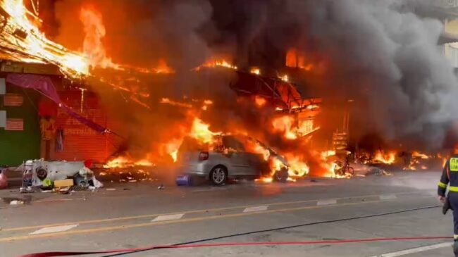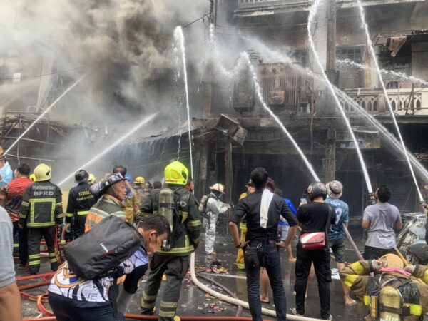 กทม.-หม้อแปลงไฟฟ้าระเบิดไฟลุกลามไหม้ตลาดสำเพ็ง พบร่างผู้เสียชีวิต 1 ราย ตึกวอด 6 คูหา-เผารถเละ 4 คัน