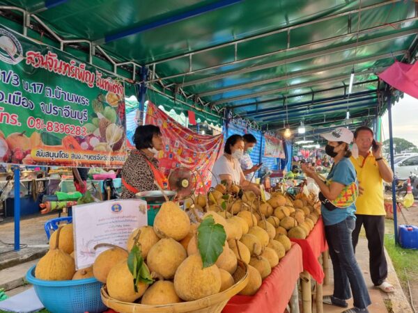 พบนักท่องเที่ยวที่เดินทางกลับลงมาจากอุทยานแห่งขาติเขาใหญ่ และ ขากลับจากตลาดโรงเกลือ – บ่อนการพนัน ชายแดนประเทศกัมพูชาต่างพากันแวะเลือกซื้อผลผลิตกระท้อนหวานนานาพันธุ์ และ ผลไม้ปราจีนบุรีจากชาวสวนที่นำมาจำหน่ายโดยตรงในงานอย่างคึกคักติดมือฝากเพื่อฝูง ญาติพี่น้อง รวมถึงสร้างรายได้ให้สินค้าอื่น ๆ ในตลาด ทั้งอาหาร – เครื่องดื่มขายดิบขายดีติดตามมา สร้างเศรษฐกิจท้องถิ่นกระเตื้องในพริบตา