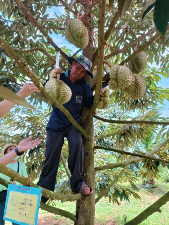 เช่นที่สวนของนายชาญ เถาว์บุญ อายุ 58 ปี เกษตรกรบ้านป้ายอุบล ต.ลำเพียก ซึ่งปลูกทุเรียนเอาไว้และกำลังให้ผลผลิตประมาณ 100 ต้น ตอนนี้มีผู้สั่งจองยกต้นไปแล้วก่อนหน้านี้เกือบทั้งสวน เหลือเพียงส่วนน้อยที่ยังพอให้นักท่องเที่ยวที่มาเยี่ยมชมสวนได้เลือกซื้อติดไม้ติดมือกลับบ้านไป