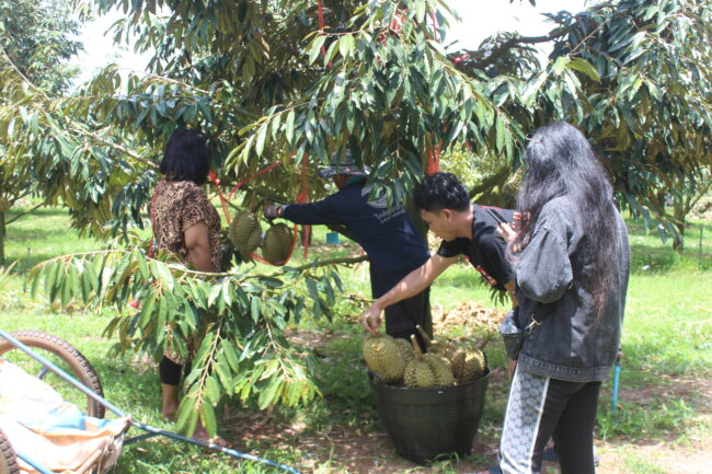 เมื่อวันที่ 27 มิถุนายน 2565 ผู้สื่อข่าวรายงานว่า ในช่วงสิ้นเดือนนี้ ทุเรียนตามสวนต่างๆในพื้นที่อำเภอครบุรี จ.นครราชสีมา กำลังให้ผลผลิตที่แก่จัดเหมาะแก่การเก็บเกี่ยวออกสู่ตลาด ทำให้บรรยากาศแทบทุกสวนเป็นไปอย่างคึกคัก โดยเฉพาะตามสวนที่เปิดให้นักท่องเที่ยวได้เข้าไปเยี่ยมชมและเลือกซื้อถึงสวน ขณะเดียวกันบรรดาลูกค้าที่ได้จองทุเรียนครบุรีมานานหลายเดือนก็กำลังทยอยเข้ามาตัดทุเรียนกันเป็นจำนวนมาก
