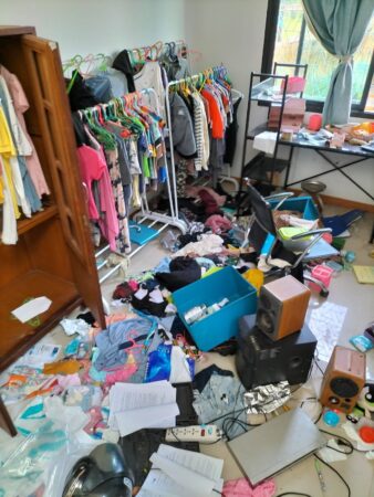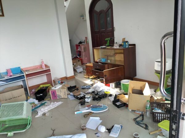 วันนี้ (27 มิถุนายน 2565) ผู้สื่อข่าวจึงเดินทางไปบ้านเกิดเหตุ ซึ่งอยู่ในพื้นที่อำเภอพระทองคำ จังหวัดนครราชสีมา พบกับนายประสิทธิ์ กล้าจอหอ อายุ 54 ปี เจ้าของบ้าน ซึ่งเป็นบิดาของนางภนัชฌา วารีพัฒน์ อายุ 37 ปี เจ้าของโพสต์ Tiktok ซึ่งได้เปิดเผยว่า ตนและครอบครัวได้พักอาศัยอยู่ที่ กทม.อยู่กับลูกสาว ส่วนบ้านหลังนี้ได้สร้างเอาไว้พักอาศัยตอนกลับมาโคราช ซึ่งเวลาปกติจะไม่มีคนอยู่ แต่ในวันที่รู้ข่าวว่ามีโจรขึ้นบ้าน คือคืนวันศุกร์ที่ 24 มิถุนายน 2565 ที่ผ่านมา โดยลูกสาวของตนบอกว่า มีคนโทร.มาบอกว่า มีโจรขึ้นบ้าน รื้อค้นข้าวของกระจุยกระจาย พอรู้ดังนั้นตนกับภรรยาจึงรีบเดินทางกลับมาที่โคราชในวันเสาร์ที่ 25 มิถุนายน 2565 พอมาถึงก็ยังเห็นประตูรั้วหน้าบ้านปิดอยู่ แต่ประตูหน้าบ้านเปิดแง้มไว้ ตนจึงรีบเข้าไปดูที่ชั้นล่างของบ้านก่อน ก็พบว่า ข้าวของในบ้านถูกรื้อกระจัดกระจายเต็มพื้นบ้าน โดยห้องของตนถูกทุบกระจกบริเวณด้านบนประตู และบริเวณลูกบิดประตู พบร่องรอยการถูกงัดแงะ พอตรวจในห้องน้ำ ก็พบร่องรอยการขับถ่ายอุจจาระทั้งในชักโครกและที่พื้นห้องน้ำ เมื่อไปตรวจสอบชั้น 2 ของบ้าน ก็พบร่องรอยการรื้อค้นข้าวของภายในบ้านเหมือนกัน