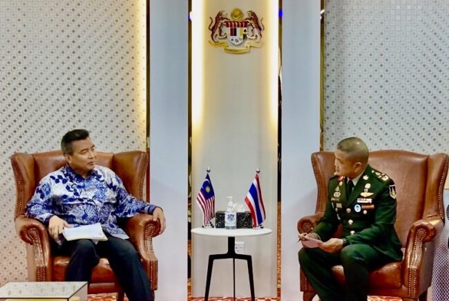 ในการพบปะหารือกับผู้บัญชาการทหารบกมาเลเซีย ผู้บัญชาการทหารบกได้กล่าวถึงความสัมพันธ์ระหว่างราชอาณาจักรไทยกับสหพันธรัฐมาเลเซียที่มีมาอย่างยาวนานถึง ๖๕ ปี พร้อมกล่าวถึงความสำคัญของความร่วมมือด้านความมั่นคงตามแนวชายแดนภายใต้กรอบคณะกรรมการชายแดน และการจัดตั้งจุดตรวจร่วมแห่งใหม่ในพื้นที่ อ. สะบ้าย้อย จ. สงขลา ซึ่งจะเปิดดำเนินการใน ๑ ต.ค.๖๕ รวมถึงการก่อสร้างรั้วเดี่ยวบนเส้นเขตแดนด่านสะเดา และ บ้านบูกิตกายูฮิตัม ซึ่งทั้งสองฝ่ายดำเนินการร่วมกัน รวม ๑๑ กม. อีกทั้ง ความร่วมมือในกิจกรรมหลักอื่นๆ อาทิ การลาดตระเวนร่วมตามแนวชายแดน, การแลกเปลี่ยนพัฒนาความสัมพันธ์ระหว่างหน่วยทหารและตำรวจตามแนวชายแดน เป็นต้น ซึ่งทั้งสองกองทัพพร้อมร่วมมือกันในการป้องกันและสกัดกั้นการกระทำผิดตามแนวชายแดน อาทิ บุคคลสองสัญชาติ, การลักลอบลำเลียงยาเสพติด, การสกัดกั้นขบวนการค้ามนุษย์ เป็นต้น