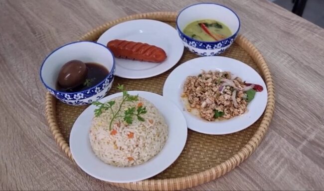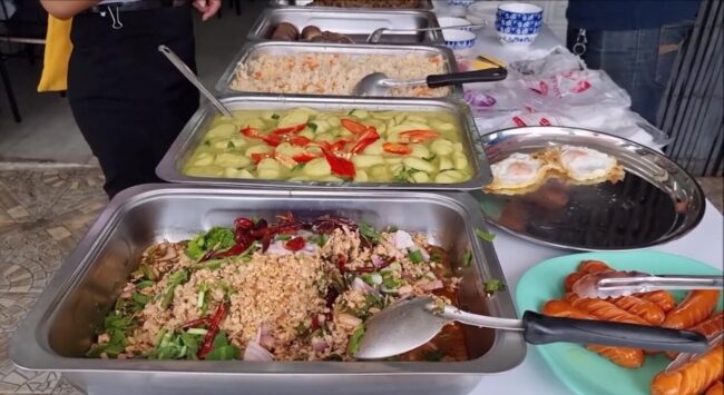 สำหรับกับข้าว แม่กับภรรยาเป็นคนช่วยทำอาหาร ส่วนตนเองเป็นคนเฝ้าหน้าร้าน แต่ละวันทำอาหาร ประมาณ 12-13 เมนู อาทิ แกงเขียวหวาน ไข่พะโล้ กะเพราไก่ และลาบไก่ โดยกับข้าวขาย ราคาอย่างละ 10 บาท ข้าวเปล่าขาย 10 บาท และข้าวสามารถตักได้ไม่อั้น