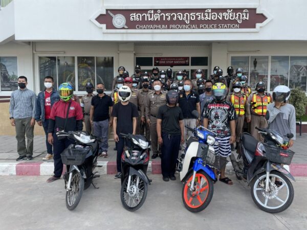 ทางเจ้าหน้าที่จึงนำกำลังเข้าตรวจสอบและทำการจับกุมบริเวณภายในหอพักแห่งหนึ่ง ตำบลในเมือง อำเภอเมือง จังหวัดชัยภูมิ และ ตรวจยึดรถจักรยานยนต์ที่ใช้ขับในการแข่งขัน และ ประลองความเร็ว 4 คัน ก่อนนำตัวมาสอบสวน เบื้องต้นทั้งทางเจ้าหน้าที่สอบสวนให้การรับสารภาพว่าเป็นบุคคลในคลิปที่มีการแข่งขันจำนวน 5 ราย
