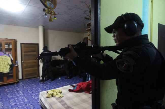 เมื่อเวลา 06.00 น. วันที่ 7 ก.ค.2565 พล.ต.ท.จิรภพ ภูริเดช ผบช.ก. สั่งการให้ พล.ต.ต.ภูมินทร์ พุ่มพันธุ์ม่วง ผบก.ปพ. พร้อมด้วย พ.ต.อ.จักรวรรดิ บุญทวีกุลสวัสดิ์ รองผบก.ปพ., พ.ต.อ.ชัยฏิภูมิ อำนวยชัย ผกก.5 บก.ปพ., พ.ต.อ.อภิสัณฐ์ ไชยรัตน์ ผกก.วิเคราะห์ข่าวฯ บก.ปพ. และ พ.ต.ท.พีรณัฏ บุญค้ำพงษ์ สว.วิเคราะห์ข่าวฯ บก.ปพ.นำกำลังชุดปฏิบัติการพิเศษคอมมานโด เข้าปิดล้อมตรวจค้น 17 จุด ในพื้นที่ 12 จังหวัด ประกอบด้วย เชียงราย, แม่ฮ่องสอน, นนทบุรี, กรุงเทพฯ, สมุทรปราการ, กาญจนบุรี, ฉะเชิงเทรา, จันทบุรี, นครศรีธรรมราช, ขอนแก่น, นครพนม และ กาพสินธุ์ ตามยุทธการ “คอมมานโดปราบคนพาล”