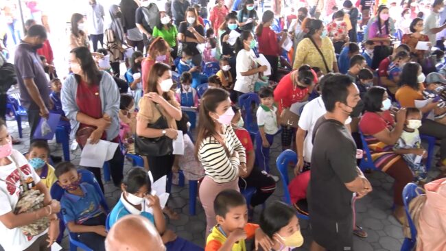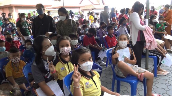 ผู้ปกครองพาลูกหลานฉีดวัคซีนที่รพ.สงขลาป้องกันโควิดระบาดรอบใหม่