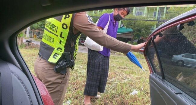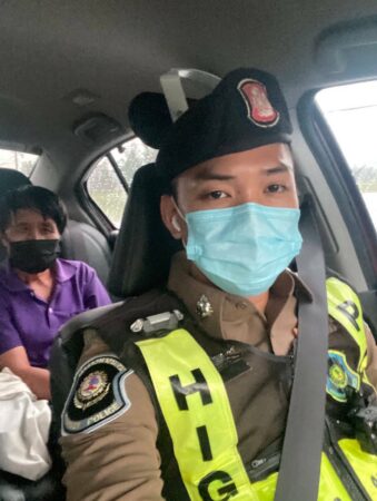 เพชรบุรณ์-ส.ต.อ.วิศรุต กงจีน พลขับ และ ด.ต.วิจิตร บุญกาจน์ พงว. สอง ตร.ทางหลวงน้ำใจงาม ช่วยเหลือ ปชช.ส่งกลับบ้าน หลังยืนตากฝนรอรถอยู่ข้างทาง