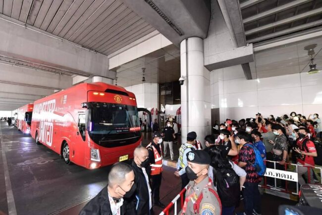 การเดินทางมาไทยครั้งนี้นำทัพโดย เอริก เทนฮาก กุนซือคนใหม่ ประเดิมคุมทีมแข่งขันในไทย ส่วนนักเตะ ประกอบด้วย แฮรี แม็กไกวร์, บรูโน แฟร์นันดส์, มาร์คัส แรชฟอร์ด, จาดอน ซานโช และ ดาวิด เดเคอา ฯลฯจากนั้น ได้เคารพพระบรมฉายาลักษณ์ พระบาทสมเด็จพระเจ้าอยู่หัว ก่อนเดินทางไปโรงแรมพลาซ่า แอทธินี ซึ่งเป็นโรงแรมที่พัก