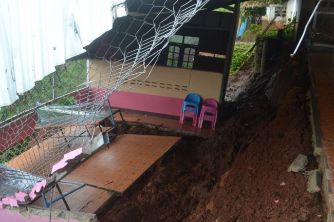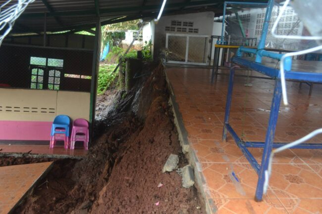 ระทึก!ฝนตกถล่มหนักติด 2 วัน ดินสไลด์ศูนย์เด็กเล็กไหลลงตลิ่งลำน้ำชี