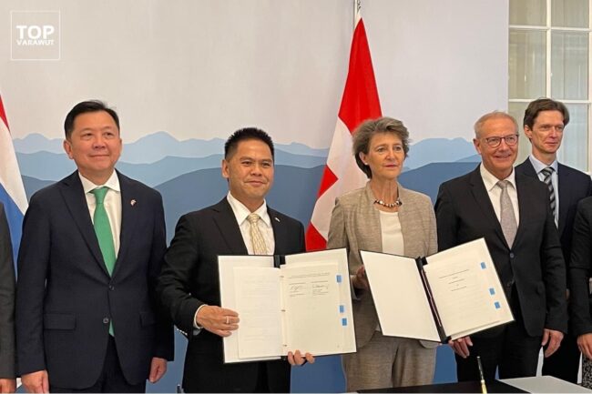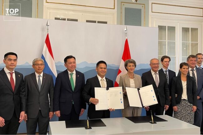โดยนายวราวุธระบุว่า “ในฐานะตัวแทนรัฐบาลไทย ได้ลงนามในข้อตกลง Implementing Agreement On Climate Protection ภายใต้ข้อตกลงปารีส (Paris Agreement) ข้อที่ 6.2 กับ สมาพันธรัฐสวิส อันเป็นข้อตกลงในการซื้อขายแลกเปลี่ยน คาร์บอนเครดิตของประเทศไทยให้แก่สมาพันธรัฐสวิส โดยไทยจะได้รับความช่วยเหลือด้านการเงิน การลงทุน และเทคโนโลยีสิ่งแวดล้อมเป็นการแลกเปลี่ยน โดยการทำข้อตกลงครั้งนี้ ได้ถือว่าเป็น 2 ประเทศแรกของโลก ที่มีการยกระดับความร่วมมือด้านคาร์บอนเครดิตอย่างเป็นรูปธรรมด้วย”