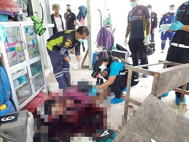 ที่เกิดเหตุเป็นคาร์แคร์ตั้งอยู่ติดถนนสายเอเซียฝั่งขาขึ้นมุ่งหน้าเข้า อ.ทุ่งสง พบศพชายอายุ 20 ปี อยู่ต.นาหมอบุญ อ.จุฬาภรณ์ จ.นครศรีธรรมราช สภาพศพถูกยิงด้วยปืนขนาด 11 มม. เข้าใบหน้า ร่างกาย หลายนัดในสภาพศพชุดเสื้อยืดคอกลมแขนยาวสีเลือดหมู กางเกงวอร์มสีเทามีแถมทั้งสองข้างสีขาว ที่เกิดเหตุพบปลอกกระสุนปืนขนาด 11 มม.ตกอยู่ 4 ปลอก และหัวกระสุนปืนทองแดง 2 หัว นอกจากนี้ยังพบหม้อข้าวภายในมีข้าวที่หุงสุกแล้วเหลืออยู่ครึ่งหม้อ พบถุงแกง 1 ถุง ถ้วยแกง ขวดน้ำปลา จามข้าว และใบจากพร้อมยาเส้นตกอยู่กระจัดกระจาย ภายในคาร์แคร์มีรถจักรยานยนต์จอดอยู่ 2 คัน อีกคันเป็นรถของผู้ตายยี่ห้อฮอนด้าเวฟ สีดำ ทะเบียน นครศรีธรรมราช เจ้าหน้าที่จึงเก็บเป็นหลักฐานของกลางทั้งหมด