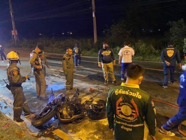 ลำพูน-หนุ่มวัย 27 ปีควบบิ๊กไบก์ชนท้ายกระบะ ไฟลุกท่วม เจ้าหน้าที่ช่วยปั๊มหัวใจยื้อชีวิต แต่สุดท้ายดับสลด คาดขี่มาเร็วก่อนชนท้ายกระบะ จนกระเด็นตกข้างทาง