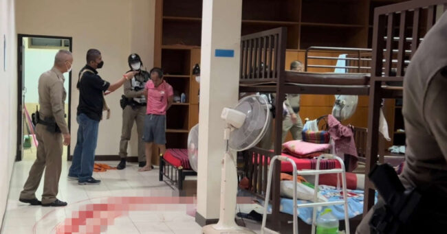 ชลบุรี-หนุ่มใหญ่เมาฉุนเงินหาย ใช้ขวดตีหัวแตก ปากฉลามแทงปาดคอหนุ่มวัย 21 เสียชีวิตสยอง คาศูนย์คุ้มครองคนไร้ที่พึ่ง หลังก่อเหตุนอนกระดิกเท้าเหมือนไม่มีอะไรเกิดขึ้น ตำรวจบุกรวบคาเตียง