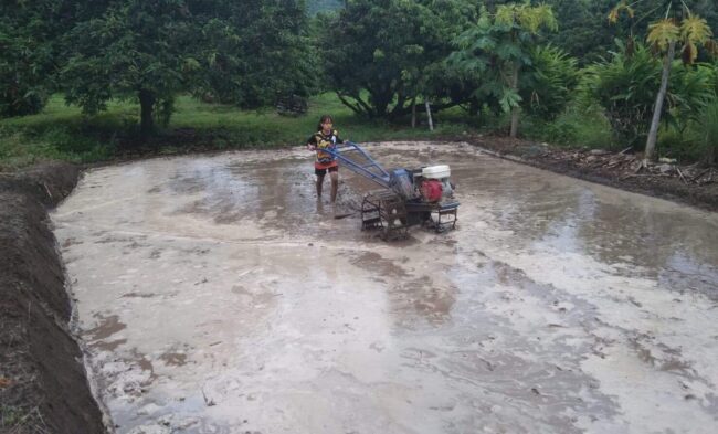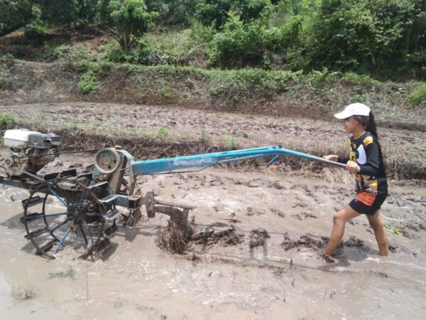 ปีนี้ ช่วงเข้าสู่ฤดูฝน มีฝนตกลงมา มีน้ำฝนเพียงพอต่อการทำนา ประกอบกับ น้องขวัญ ว่างจากไปเรียนหนังสือ ซึ่งวันนี้เป็นวันหยุดเรียนชั้น ม.ต้น เนื่องจากรุ่นพี่ ม.ปลายสอบกลางภาคเรียน น้องขวัญจึงมาช่วยไถนา โดยใช้รถไถแบบเดินตาม บางครั้งก็มีเพื่อนๆ มาช่วยทำนาด้วยซึ่งสามารถช่วยผ่อนแรงตนได้เป็นอย่างมาก