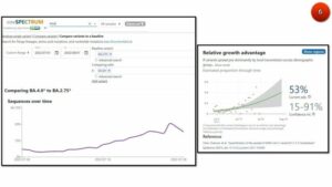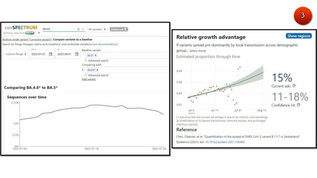 โอมิครอนสายพันธุ์ย่อย BA.4.6 มีความได้เปรียบในการเติบโต-แพร่ระบาด (relative growth advantage) เหนือกว่า BA.5 ทั่วโลกประมาณ 15% (ภาพ3)และ BA.5 ในเอเชียประมาณ 28% (ภาพ4)