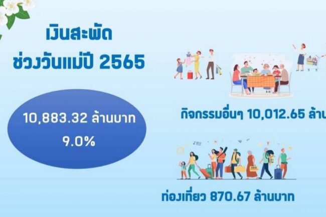 เมื่อวันที่ 9 ส.ค.65 นางอุมากมล สุนทรสุรัติ ผู้ช่วยผู้อำนวยการศูนย์พยากรณ์เศรษฐกิจและธุรกิจ มหาวิทยาลัยหอการค้าไทย เปิดเผยผลสำรวจ “ทัศนคติและพฤติกรรมการใช้จ่ายของประชาชนในช่วงวันแม่ ปี 2565” ซึ่งดำเนินการสำรวจระหว่างวันที่ 28 ก.ค.- 2 ส.ค.65 จำนวนกลุ่มตัวอย่าง 1,288 คนทั่วประเทศ พบว่า วันแม่ปี 2565 นี้ คาดว่าจะมีเม็ดเงินสะพัด 10,883 ล้านบาท เพิ่มขึ้น 9% จากปี 63 (ปี 64 ไม่ได้ทำการสำรวจ เนื่องจากมีสถานการณ์โควิด) โดยเม็ดเงินดังกล่าว แบ่งเป็นการใช้จ่ายในกิจกรรมต่างๆ 10,012 ล้านบาท และการใช้จ่ายเพื่อการท่องเที่ยว 870 ล้านบาท