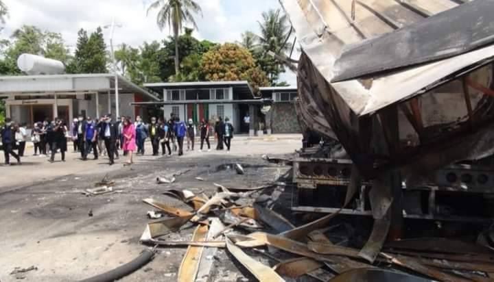 ส่วนความเสียหายในขณะนี้ยังมาสามารถบอกได้เพราะต้องมีการประเมินก่อน แต่ก็คงเหมือนกับทำปั๊มใหม่ทั้งหมด ส่วนที่ว่าอยากจะฝากอะไรกับคนที่ก่อเหตุในครั้งนี้ ที่จริงไม่อยากจะฝากอะไรกับผู้ก่อเหตุ เพราะเราไม่รู้จักกัน เราไม่ได้เป็นศัตรูกัน เราอยากพัฒนาบ้านเราเจริญให้มากที่สุด ดูแลทุกคนให้ได้มากที่สุด เพราะฉะนั้นไม่อยากฝากอะไรทั้งสิ้น แค่อยากจะบอกว่า สิ่งที่ทำนั้นมันกระทบไม่ใช้แค่เรา แต่กระทบไปถึงครอบครัวของพนักงานทุกคน ที่เราดูแลอยู่ และถือเป็นครอบครัวเดียวกัน