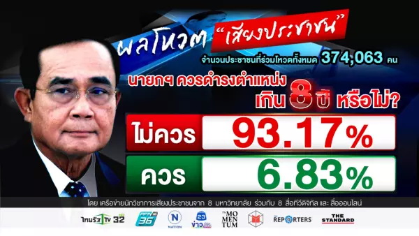 เสียงประชาชน 93.17% โหวตไม่ควรให้ “บิ๊กตู่” เป็นนายกฯ เกิน 8 ปี