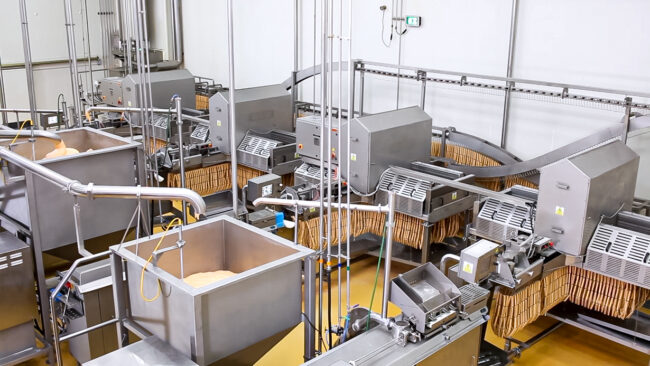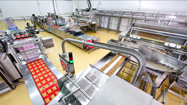 “กระบวนการผลิต ตั้งแต่ขั้นตอนการรับวัตถุดิบและจัดเก็บในห้องเย็นซึ่งเป็นห้องจัดเก็บและเบิกจ่ายวัตถุดิบแบบอัตโนมัติ หรือ ASRS (Automated Storage & Retrieval System) ช่วยให้คุณภาพสินค้าสดใหม่เสมอ จากนั้นนำไปผ่านกระบวนการทำให้สุกด้วยการอบและรมควัน โดย ‘ระบบรมควัน’ ใช้เทคโนโลยีในการดักแยกสารทาร์ (TARS) ที่มีองค์ประกอบของสารก่อมะเร็งออกจากไส้กรอกได้ 100% จากนั้นสินค้าที่แยกสารทาร์ออกแล้วจะถูกนำมาตรวจอีกครั้ง เพื่อให้มั่นใจได้ว่าปลอดภัยต่อการบริโภค” นายณฤกษ์ กล่าว