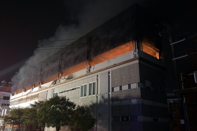 สมุทรปราการ-เพลิงไหม้อาคารจอดรถกอล์ฟในสนามกอล์ฟย่านบางพลี เผารถกอล์ฟจอดชาร์จแบตเสียหายกว่า 70 คัน เผยเพิ่งเกิดเพลิงไหม้ไปเมื่อต้นเดือน ส.ค.ที่ผ่านมา สันนิษฐานว่าไฟฟ้าลัดวงจร