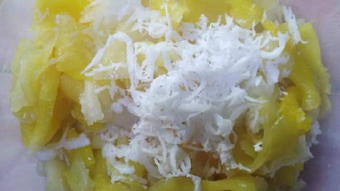 หลังจากล้างน้ำสะอาดดีแล้ว จะใช้มีดฝานเป็นชิ้นหรือแว่นบางๆ แล้วนำไปแช่น้ำเกลือในอัตตรากลอย 2 กก.เกลือเม็ด 1กก.แช่ทิ้งไว้ 3 คืน เพื่อให้เกลือกัดสารเมาออกจากเนื้อกลอยให้ออกจนหมด เมื่อกลอยถูกความเค็มจะเนื้อนุ่มและคลายสารพิษออก หลังจากแช่น้ำเกลือ 3 คืนแล้ว นำกลอยมาแช่ ในน้ำจืดต่ออีก 1 คืน จากนั้นนำกลอยจืดไปนึ่งเหมือนกับนึ่งข้าวเหนียว เมื่อกลอยสุกนำมาคลุกมะพร้าวขูด คลุกน้ำตาลทราย โรยงาเล็กน้อย แค่นี้ก็สามารถรับประทานกลอยนึ่งได้แล้ว