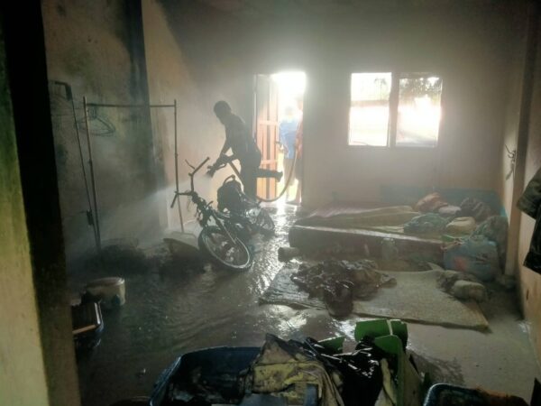 สอบถามนายทิว อยู่หมื่นไวย อายุ 39 ปี ผู้อาศัยในห้องเช่าติดกับห้องไฟไหม้ กล่าวว่า ครอบครัวผู้ก่อเหตุ เพิ่งมาเช่าอยู่ห้องข้างๆ ได้เพียง 10 วัน โดยอาศัยอยู่ด้วยกัน 4 คน พ่อ แม่ และลูก 2 คน ผู้ก่อเหตุเป็นลูกชายคนโต ตอนแรกตนเองได้ยินห้องข้างๆ ทะเลาะกัน ระหว่างพ่อกับลูกชายคนโต หลังจากนั้นก็ได้ยินคนตะโกนว่ามีคนถือมีดไล่ฟันกัน ตนเองจึงไม่กล้าออกมาข้างนอกห้อง หลังจากนั้นไม่นาน เห็นควันไฟจำนวนมากพวยพุ่งมาในห้องของตน จึงรู้ว่าห้องข้างๆ ถูกไฟไหม้ และตนเองได้รีบเปิดประตูหนีตายออกมาจากห้องอย่างรวดเร็ว ก่อนที่จะเห็นว่าไฟได้ลุกไหม้ห้องข้างๆ อย่างรุนแรง