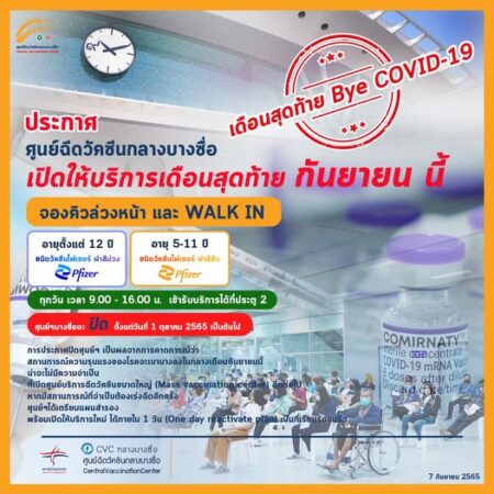 * แต่หากมีสถานการณ์ที่จำเป็นต้องเร่งฉีดอีกครั้ง ศูนย์ฉีดวัคซีนกลางบางซื่อ เตรียมการตามแผน “ปิดแต่พร้อมเปิด” ไว้แล้ว โดยสามารถจะเปิดศูนย์ฯ เพื่อให้บริการใหม่ได้ภายใน 1 วัน