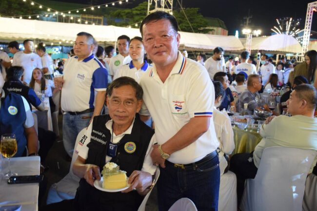 โดยพล.ต.อ.ศักดา เตชะเกรียงไกร ที่ท่านให้ความกรุณาเดินทางมาร่วมงาน ในครั้งนี้ “ผมยืนยันจะเดินหน้าทำงานอย่างสุดความสามารถให้ประชาชนชาวปทุมธานี มีคุณภาพชีวิตที่ดีขึ้น จะมุ่งมั่นเดินหน้าแก้ไขปัญหาต่าง ๆ สร้างสิ่งใหม่ ๆ และสัญญาจะทำทุกชั่วโมงในทุกวันให้มีค่ามากที่สุด” และพร้อมทำงานเต็มที่เพื่อประชาชนพี่น้องชาวรังสิต “นายสมศักดิ์ เกียรติพัฒนาชัย กล่าวทิ้งท้าย ทั้งนี้ในช่วงค่ำยังมีการจัดงานเลี้ยงฉลอง เป่าเค้กวันเกิด และร่วมสังสรรค์กันอย่างคึกคัก